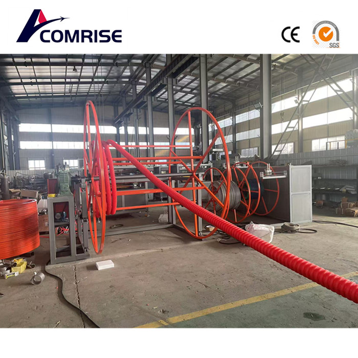 1. Vamzdį išspausdina pirmasis ekstruderis ir tada patenka į vingio mašiną, o krepšelio CO ekstruzijos pelėsis sudaro vamzdžio formą. 2. Vamzdžio medžiaga daugiausia pagaminta iš didelio tankio PE.