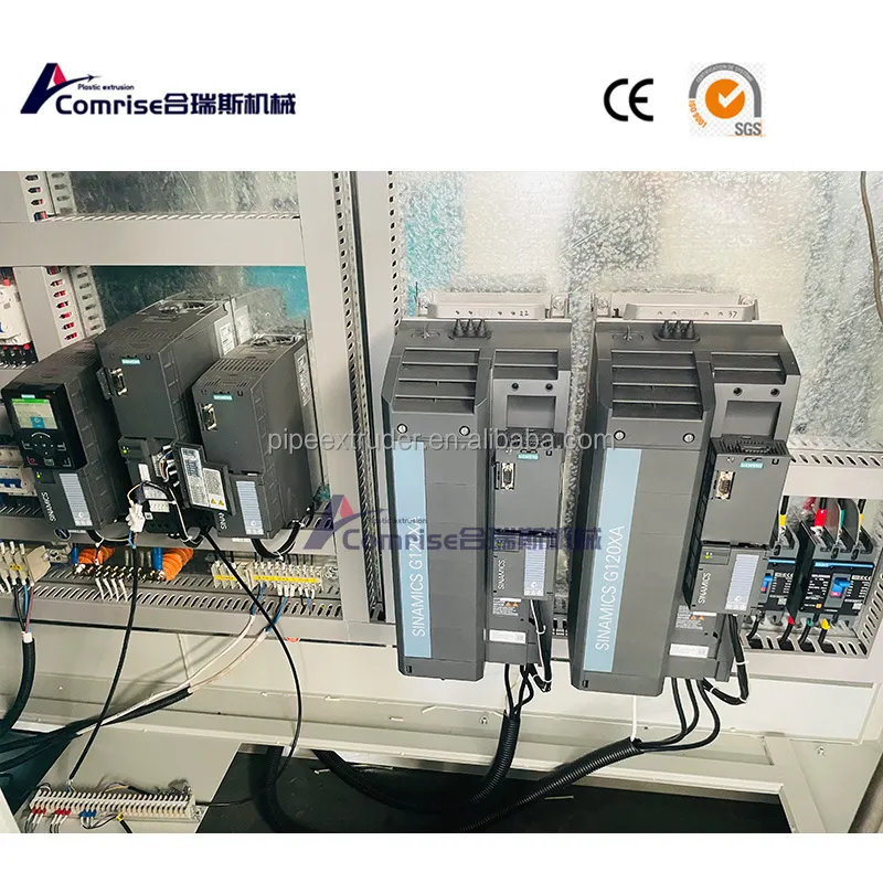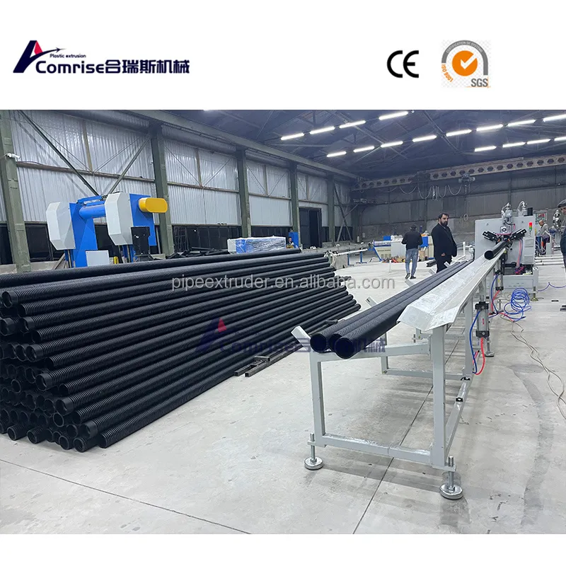 1. Estruuderis: pagrindinis komponentas, kuriame žaliavos (paprastai HDPE, PVC ar PP) yra ištirpintos ir suformuotos į ištisinį vamzdį.