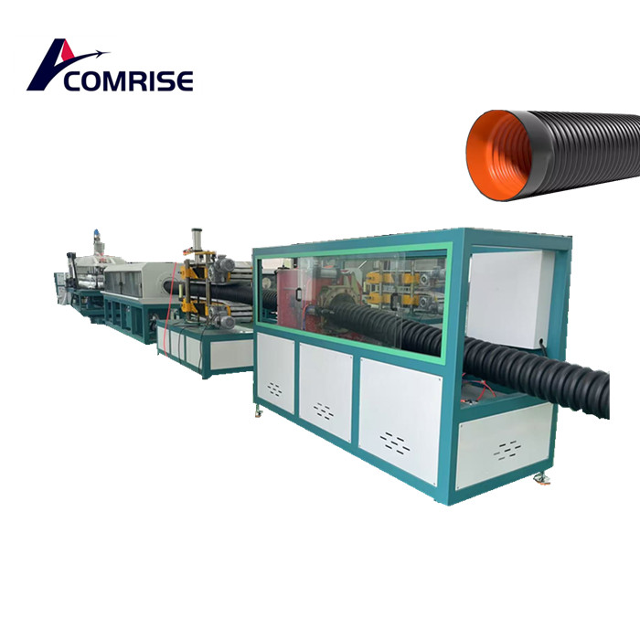 Dvigubos sienos gofruotas vamzdžių gamybos mašina yra karštas mūsų įmonės pardavimo produktas. Jis pagamintas iš polietileno/polipropileno dalelių kaip žaliavos. Gatavų vamzdžių skersmuo svyruoja nuo 40 mm iki 110 mm, o pagaminti vamzdžiai turi geras virpėjimo formas, pastovias siūlus ir lygius vidinius bei išorinius paviršius. Gamybos linijos greitis yra maždaug 2–4 m/min (priklausomai nuo konkretaus vamzdžio skersmens)
