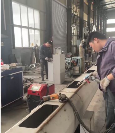 Techniniai gamyklos darbuotojai nenuilstamai dirba apie apdorojimą