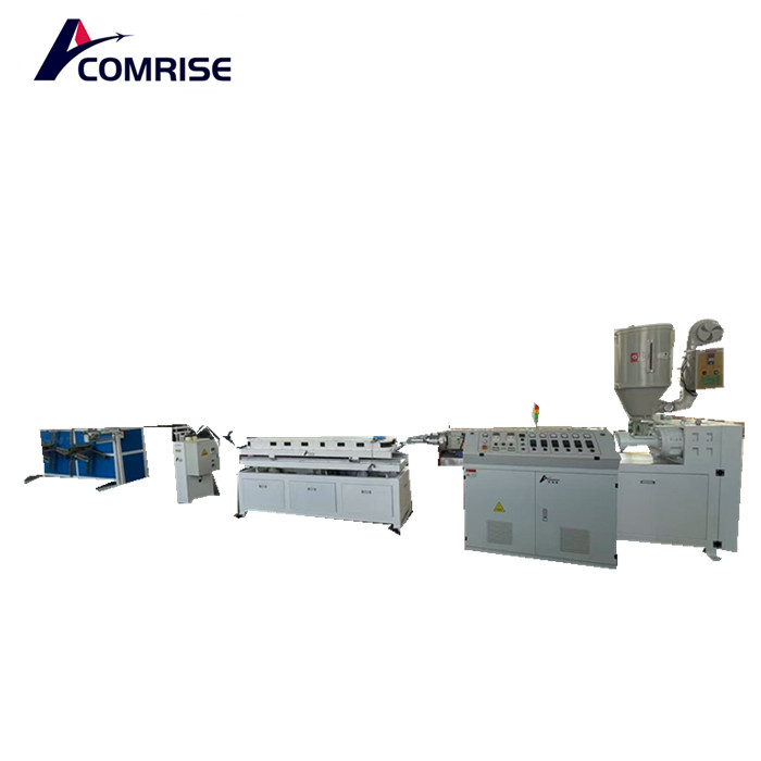 Žaliavos+priedai → Maišymas → Vakuuminis tiektuvas → Butuko džiovintuvas → Vieno varžto ekstruderis → Spalvų kodo ekstruderis → Pelėsiai ir kalibratorius → Vakuuminis formavimo mašina → aušinimo bakas → Priekaba → Pjovimo mašina → Vaizdo mašina